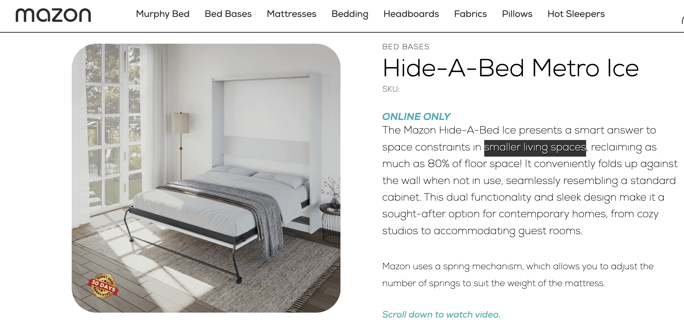 Stronger storytelling for the Hider Bed, lifting the clarity and appeal of their only D2C product